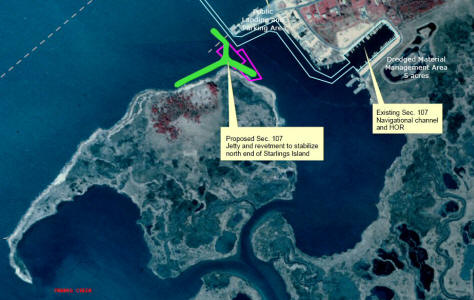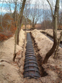which is of great benefit. Septic System - A septic system for a 3 bedroom house (450 Gallons Per Day) was completed in March of 2003. While the plans had called for a 1,000 gallon tank, the septic system was constructed with a 1,250 gallon tank to allow a longer life for the system. A Bio-Diffuser system by ADS was used for the drain field instead of a conventional gravel and pipe system. The system has been approved by the Health Department. Corps of Engineers Jetty Project - |