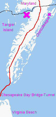 North of Norfolk, Virginia or 50 miles South of Salisbury, Maryland.